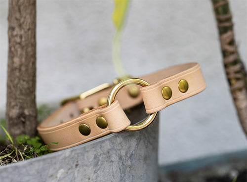 Adjustable Italian Leather Dog Collar with Brass Buckle and Ring
