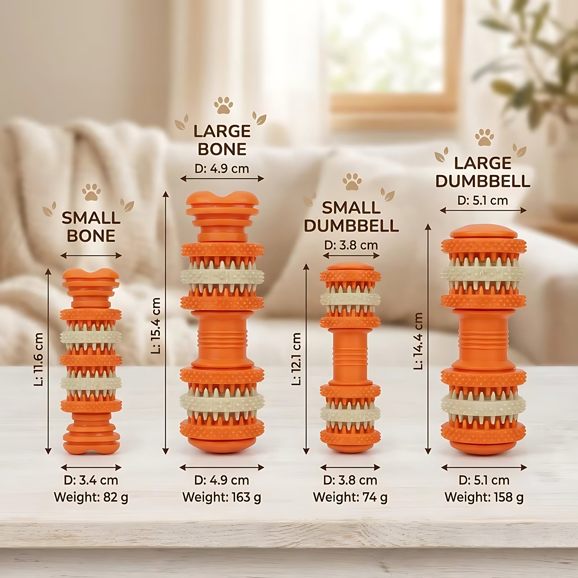 Simply add your dog’s favourite treats inside to encourage interactive play and longer engagement. The textured surface also helps massage gums and support dental hygiene during chewing.